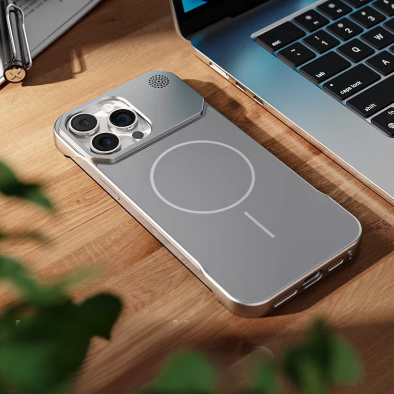 Coque de luxe en aluminium sans cadre en forme de X – Argent