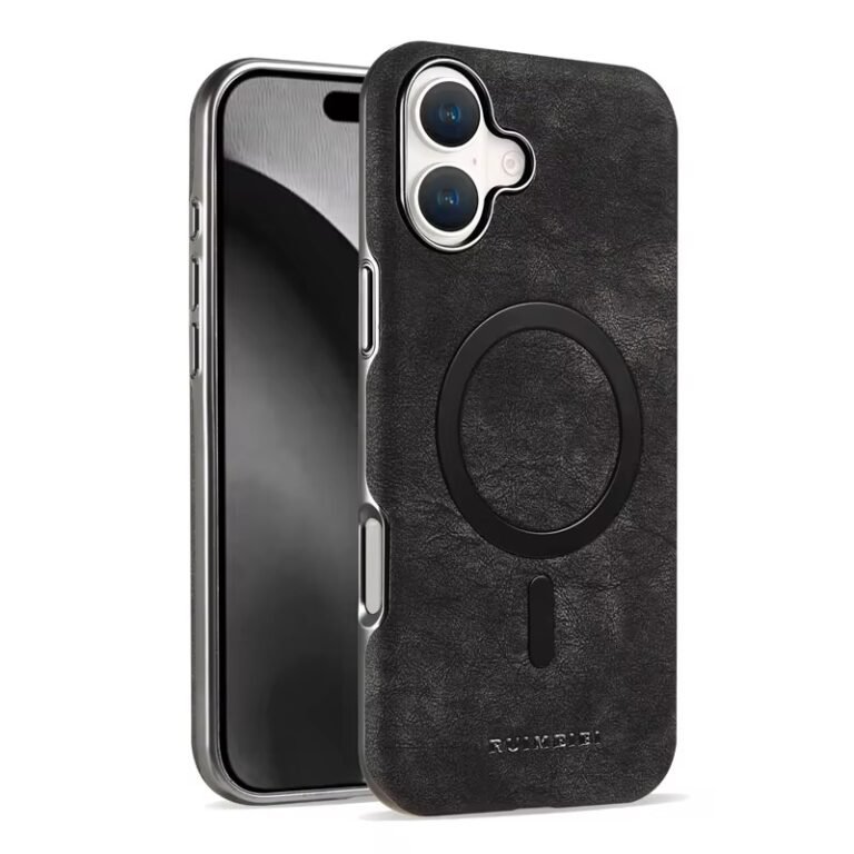 Coque en cuir véritable avec bordure silicone – Noir